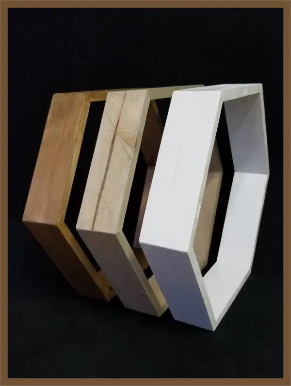 designs for cross shadow box and hexagon shadow box. We can custom make a shadow box for your special items or as a gift to a special